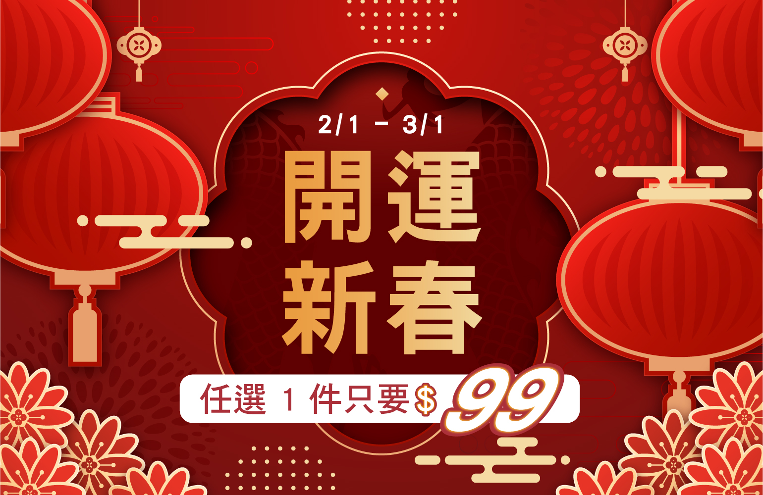 開運新春!任選 1 件 NT$99 優惠
